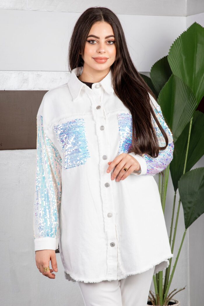 3. **التفاصيل**: يحتوي على تطريز لامع بألوان متغيرة على الأكمام وجيوب الصدر.