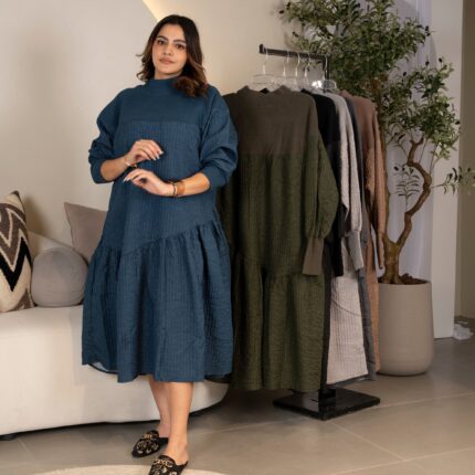 فستان طويل باكمام طويلة ومنتفخة